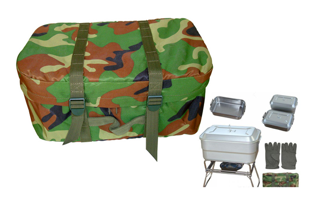 外形尺寸:380×260×240mm 總質(zhì)量:7kg 使用燃料:固體燃料及木材等 加工量: 一小時可完成12人主、副熱食工作 構(gòu)成明細(xì):攜行包1個;主食鍋1套;副食鍋1套;支架2付;儲水袋2條;炊事用具1套